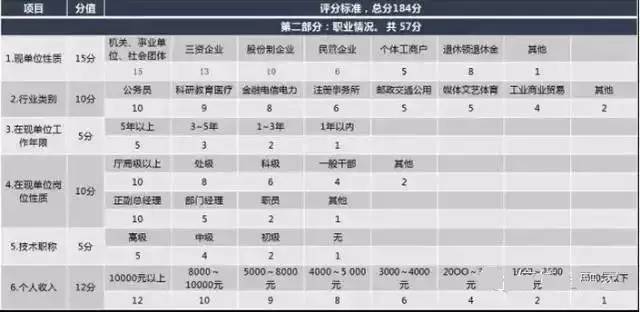 1.由于收入与还款能力紧密挂钩,所以该项在评分体系中占据了重头。显而易见的是,高收入者的还款能力易被贴上“强劲”、“稳固”等诸如此类的标签,你若是信用良好,可以一帆风顺、一气呵成攻破银行的贷款之门。